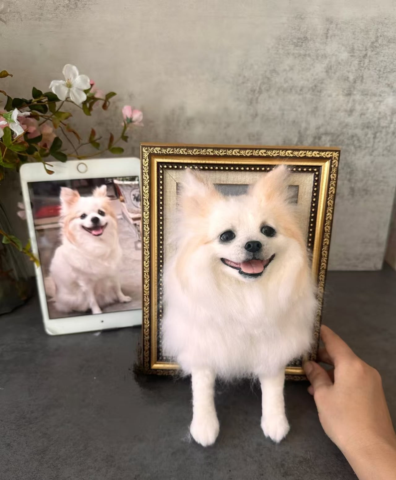 Customized Wool Felt Pet Full-body Portrait With A Frame - 3D Sculpture
