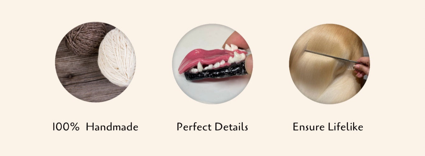 We use premium wool and expert needle felting to shape your pet’s portrait, then handcraft and paint custom glass bead eyes for a lifelike, expressive finish.
