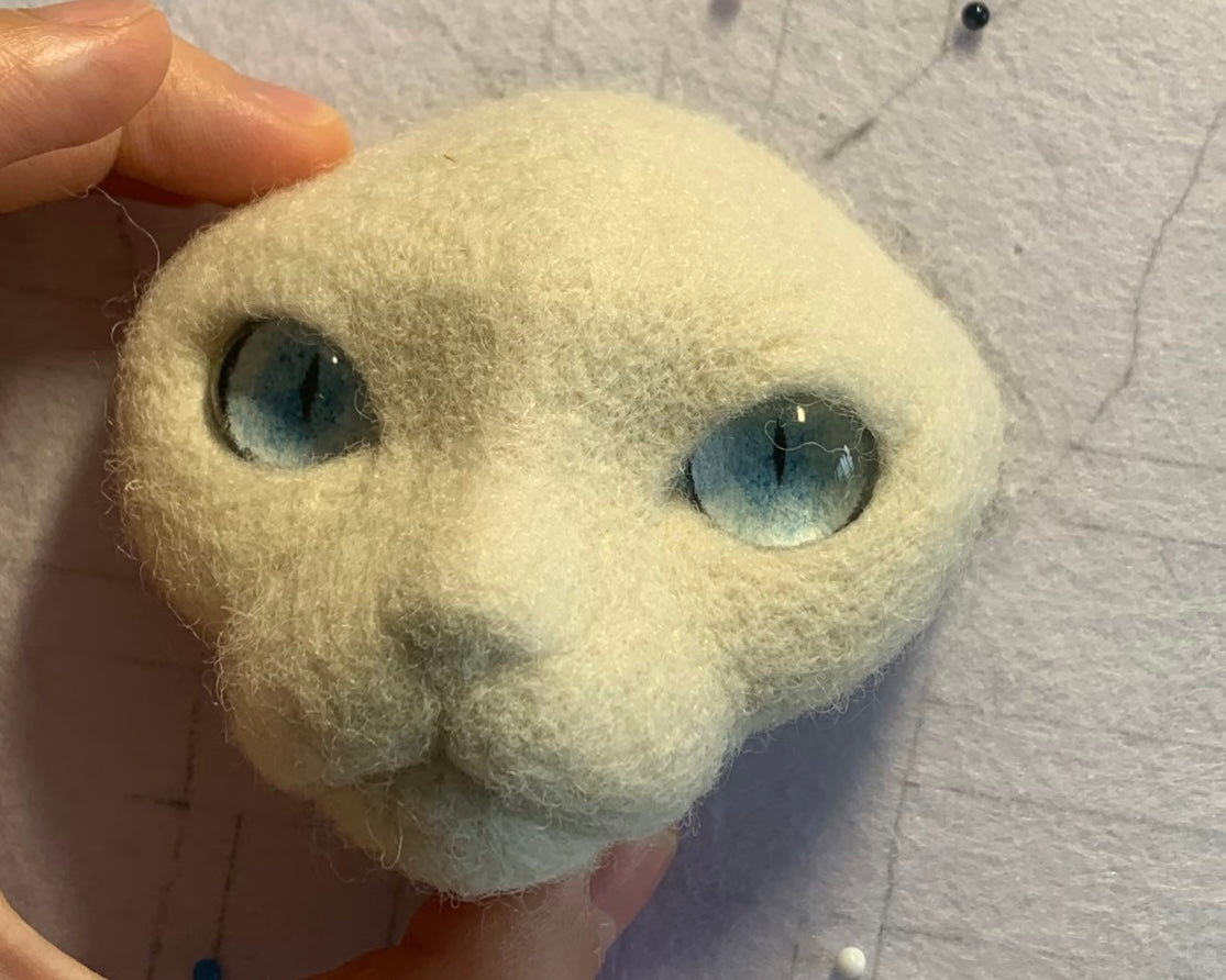 We use premium wool and expert needle felting to shape your pet’s portrait, then handcraft and paint custom glass bead eyes for a lifelike, expressive finish.
